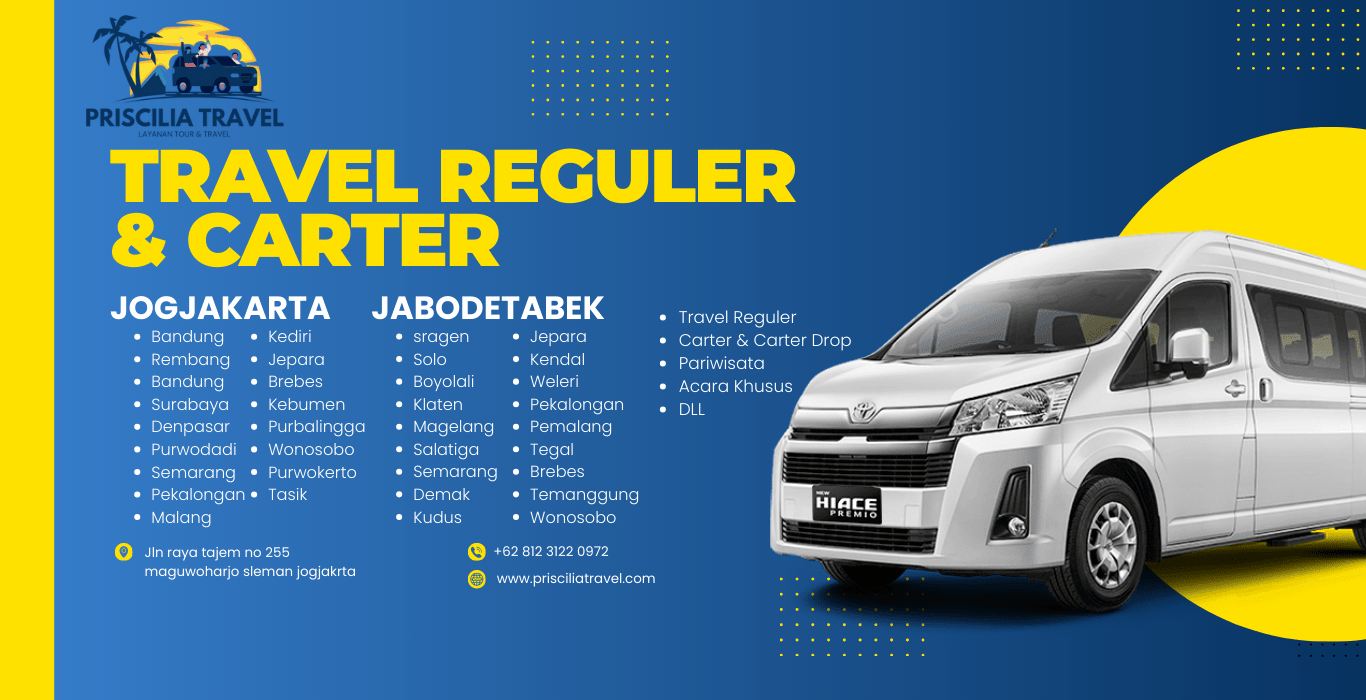 Temukan layanan terbaik untuk Travel Cilacap Surabaya bersama Priscilia Travel. Aman, nyaman, dan selalu tepat waktu dengan layanan door to door serta armada berkualitas. Kunjungi